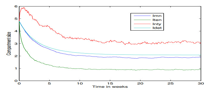 P. J. Witbooi, An SEIRS epidemic model with stochastic transmission, Adv. Difference Equ., 2017 (2017), 16pp.