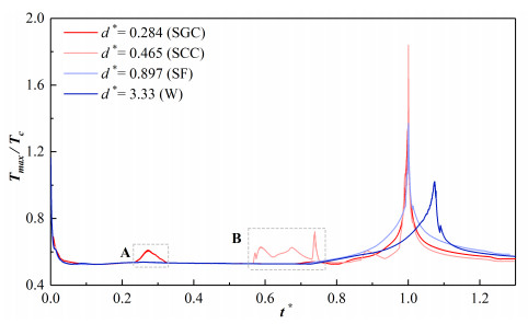 The maximum dimensionless temperature evolution processes of different interaction modes with