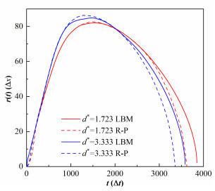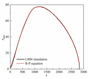 A quantitative comparison of the bubble radius evolution processes in the LBM simulation and the R–P prediction with
